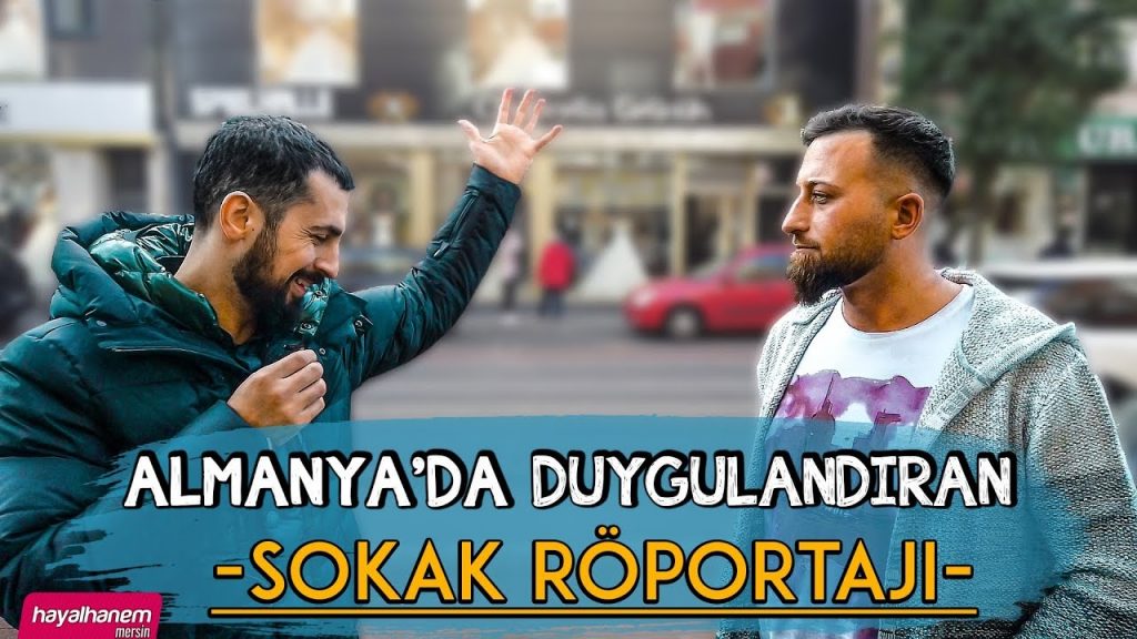 Almanya’dayız. Şimdi sokak röportajı çekeceğiz. Buradaki Türk arkadaşlarla ana konumuz namaz. Bakalım dedik yani. Türkiye ile bura arasında bir kıyas yapsak namaz hassasiyeti nasıl dedik. Yok daha takılı değil. Kofti daha. (Gülme sesleri) Röportaj yapabilir miyiz ? Eyvallah. Eyvallah. Türkçe var. Eyvallah. Bak beni tanıyor musun? Gel buraya o zaman? Bir dakika. Tanıyorsan geleceksin. Hanım mı bekliyor? Merhaba. Zaza mısın? Aynen abi. Tamam.