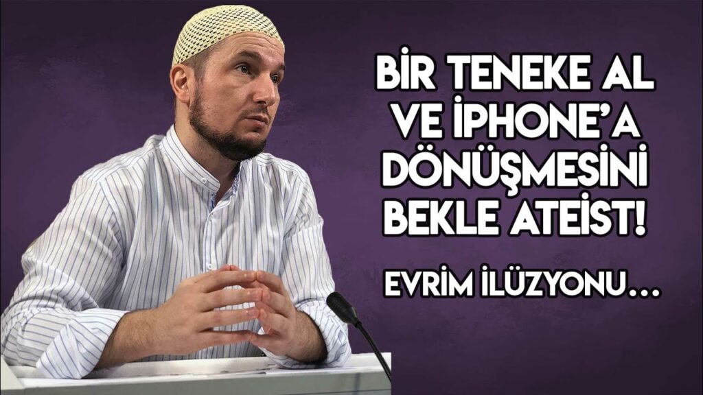 Maymun denilen bir hayvan var Allah’ın yarattığı. Ateistlerin atası… Şimdi bu ateistler ne diyor? “Biz maymundan geldik.” Kendisinin atası olarak bir maymunu yakıştırıyor. Utanmadan sıkılmadan, bir maymuna benim atam diyor. Kur’an diyor ki: “İnsan, senin atan insan.” İlk insanı ben; Anasız, babasız, topraktan, bir balçık çamurdan yarattım. Senin atan bu. Bunlar diyor ki: Hayır, biz insanı kabul etmiyoruz, biz maymunu kabul ediyoruz. Kardeşin bir tanesi yazmış. Bizi her gruptan insanlar dinliyor kardeşler, ateistler de bizi dinliyor. Allah’a şükürler olsun. İnşaAllah onlara da vesile olacağız, onların da hidayetlerine vesile olacağız. İnşaAllah. Bir tanesi diyor ki: Hocaaa! Onlar bana yazı yazarken eleştiri yazısı, hocam demiyorlar. Hocaaa! Aşağılama cümlesi. “Sen evrime inanmıyor musun?” Soruya bak. Evrime inanmıyor musun? Kardeşim ben evrime inanıyorum da, bu evrimi bir evirip çeviren olması lazım. “Ben evirip çevirene inanıyorum.” Kendi kendine hiç bir şey evrilmez ki. Şimdi sana şöyle bir örnek vereyim. Git bir marketten, salataların üzerine konulan o mısırlardan al mısırlardan. Salataların üzerine sarı sarı mısır tanecikleri koyuyoruz ya böyle. Mısırları al salatanın üzerine koy, salatayı yerken o mısırın kabı var ya teneke, onuda al sofranın ortasına koy. Ve bekle. O teneke bir evrim geçirsin ve bir iPhone’a dönüşşün. Olur mu kardeşler? Kardeşim; Vallahi Billahi bir milyon yıl bekle, bırak iPhone’a dönüşmeyi, o açtığın tenekenin kapağı var ya kendi kendine kapanmaz bile. Hani bizim derimizden bir şeyi kestiğimiz zaman, o kendi kendine kapanır. Allah Teala, o canlı olan hücrelere emreder ve o derideki kesik kendi kendine kapanır. Ama bu teneke bir milyon yıl beklese, bırak iPhone’a dönüşmeyi, kapanmaz! Bunlar ne diyor: “Beklemiş… beklemiş… başlamış dönüşmeye! Sonra kendi kendine bir hücreden maymun türemiş, maymun; Yüz yıllar geçmiş yüz yıllar geçmiş, yavaş yavaş sürünürken sürünürken, iki ayakla yürümeye başlamış. Ondan sonra dikleşmiş, suratındaki çirkinlik de düzgünleşmiş ve insan haline dönüşmüş. İşte bizim atamız maymundur. Bilgisayar oyunu mu oynuyorsun kardeşim ya, böyle iş olur mu ya…